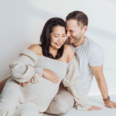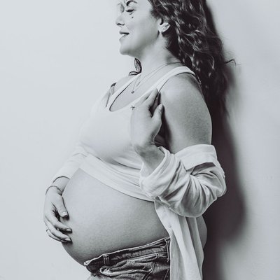 I typically recommend scheduling your maternity photos at around 34 weeks. It’s an excellent time to show off your belly, and most women feel like they have enough energy to move around and take photos without discomfort. If your situation is different for any reason, we can adjust the time frame to fit your needs.